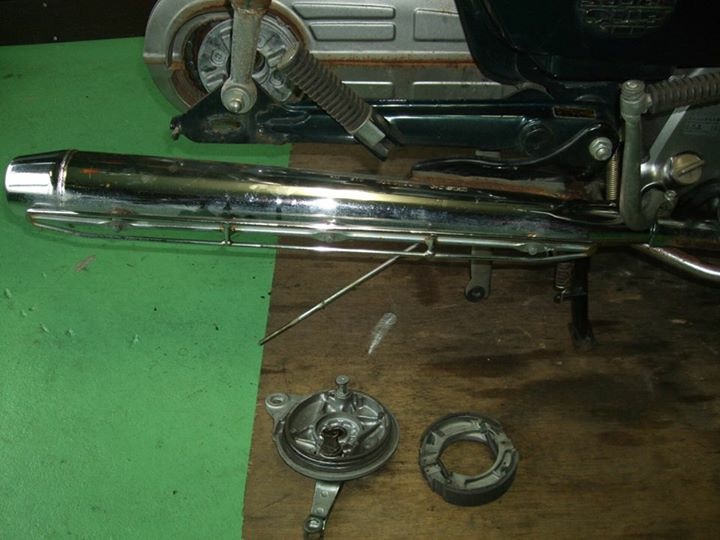 SPADAはマフラー交換作業が途中で引くに引けない状況になってしまったので、スーパーカブ70カスタムでの行程です。