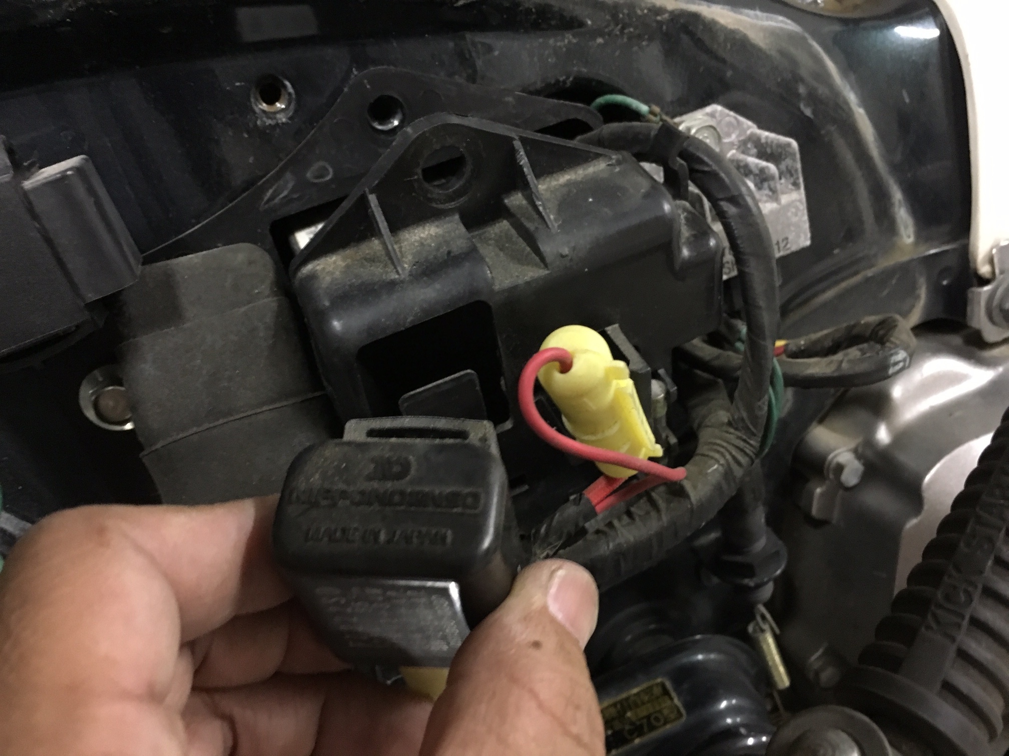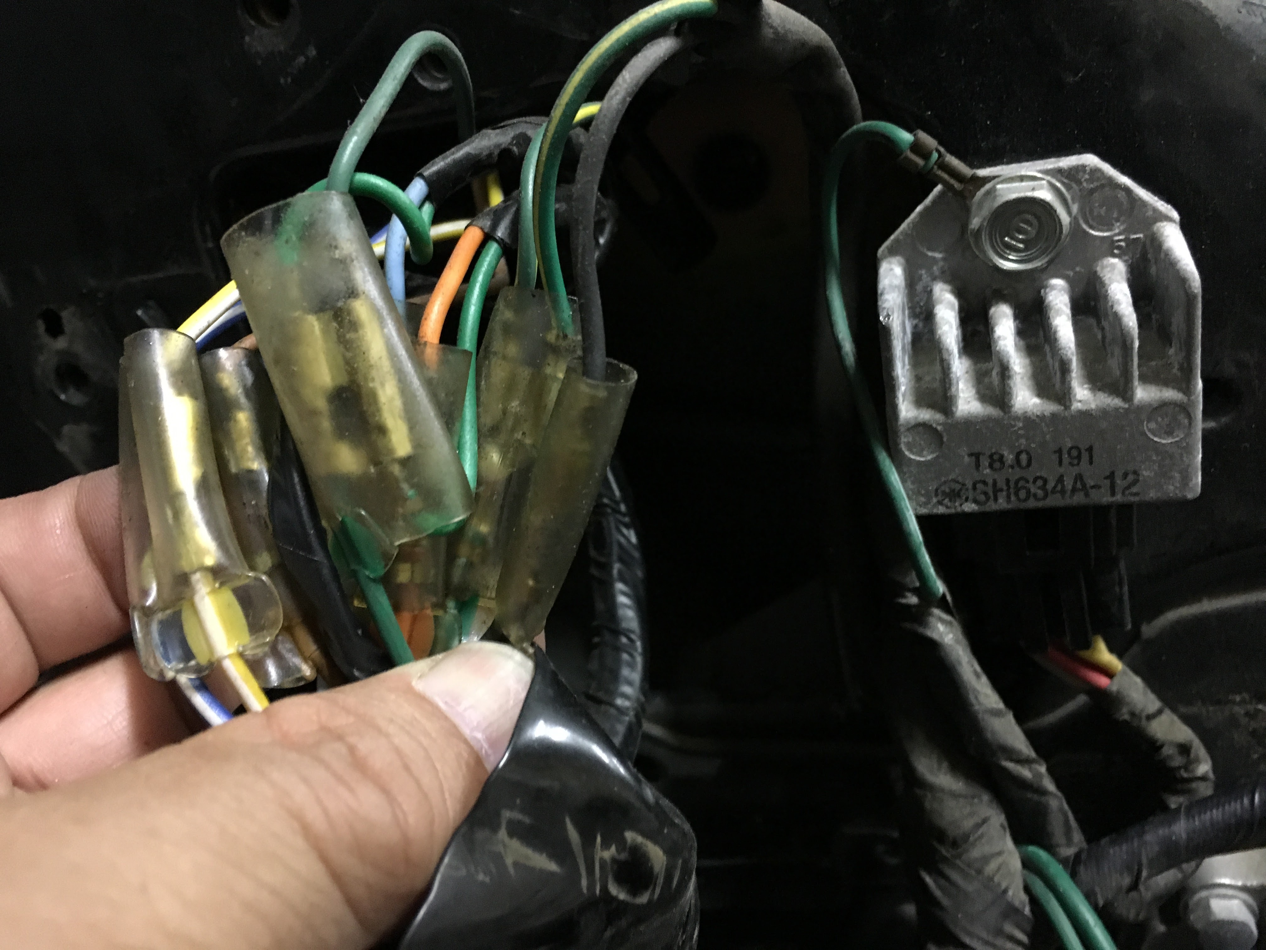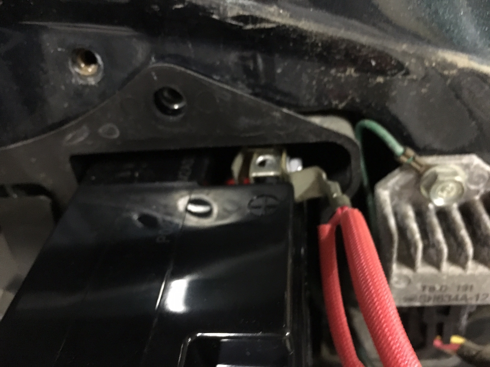 バッテリーを外して、その奥をゴソゴソ配線の束を引っ張り出す。