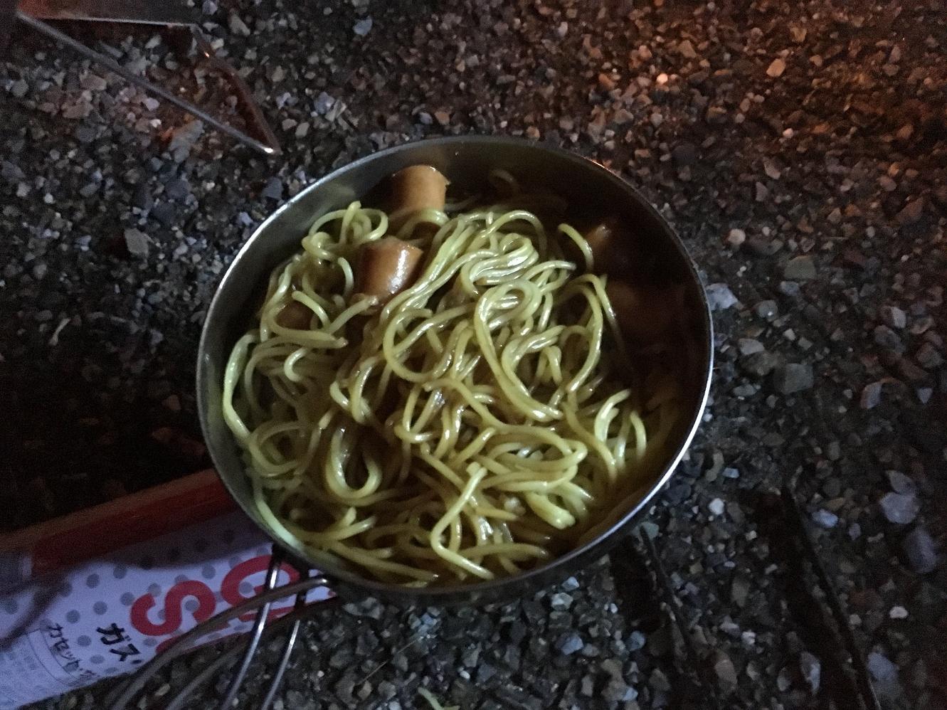 茹で麺で良かったんだけど、調味料を持ってきてなかったのでソース付焼きそばで。