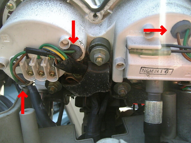 先日、タイヤ交換をした時に、店の人と話をしてて、ヘッドライトをヘッドライトステーから外さないとメーターの電球交換は出来ないと聞いたので、ステーから外してみる。